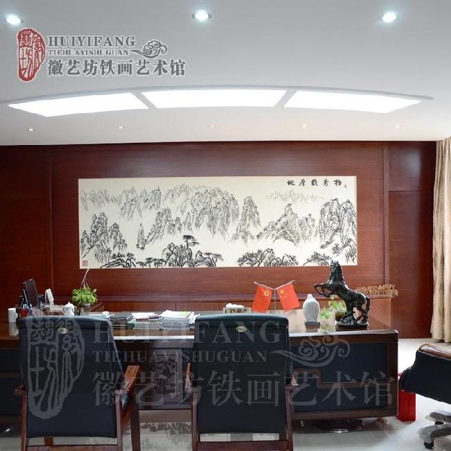 安徽信力康定做的董事長辦公室背景墻大型鐵畫《地厚載萬物》