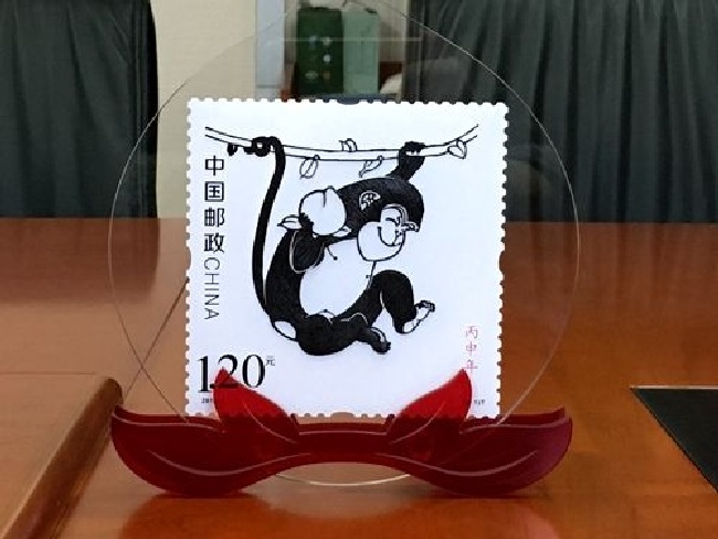 丙申年生肖郵票由猴票之父黃永玉設計,一套兩枚,一枚16張,一張是公猴摘桃,另一張則是母猴帶著兩個孩子。元月5日首發的《金猴獻瑞,國泰民安》鐵畫藝術珍藏郵冊中,除了猴票大版外,還包含了拜年郵票、年俗文化郵票、祝福祖國的郵票,以及一枚猴年鐵畫藝術郵票,售價為518元。