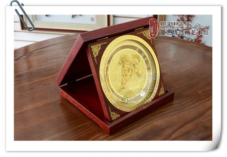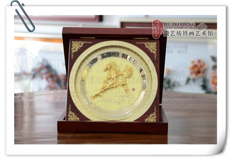 《馬到成功》金盤金畫-徽藝坊鐵畫特色禮品