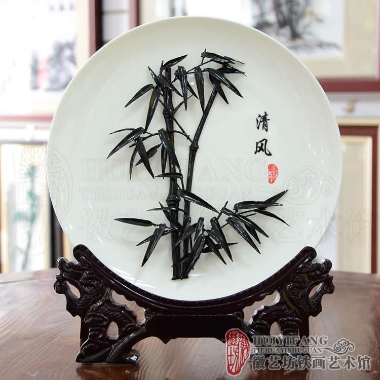 《清風》竹瓷盤鐵畫10寸-清新雅致鐵畫禮品