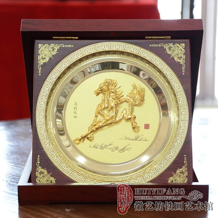 《馬到成功》金盤金畫-徽藝坊鐵畫特色