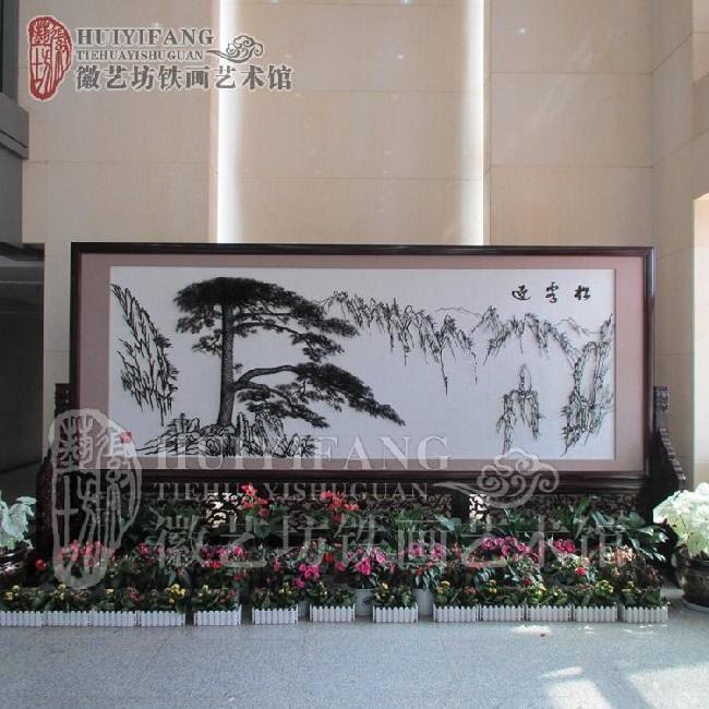 安徽藝術(shù)學(xué)院新樓大廳定制的大型迎客松鐵畫屏風(fēng)